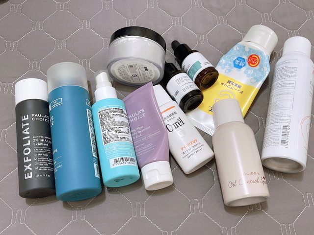 臉部保養的部分,我是用油水平衡化妝水+水楊酸精華,因為我是油肌所以這兩罐加一罐