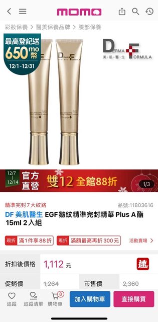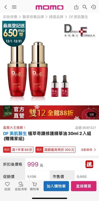 標題[情報] DF美肌醫生 momo雙12組合+滿額贈