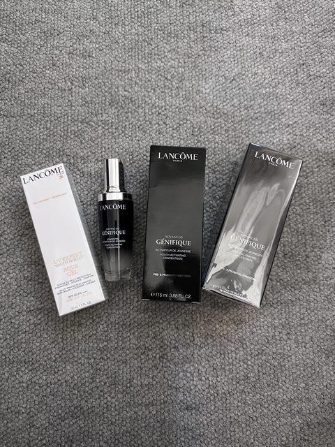 小黑瓶是在Selfridge買的、防曬水凝露則是趁家人出差在新加坡機場購入;
