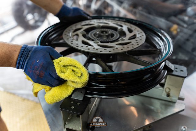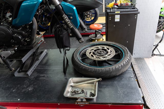 前輪更換象牌Sportec Street,並使用扭力板手鎖緊前輪軸芯