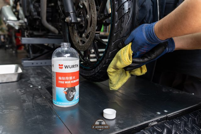 使用除蠟水幫輪胎除蠟