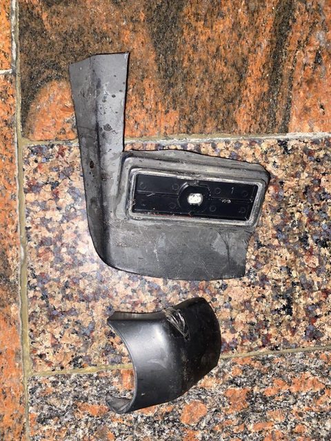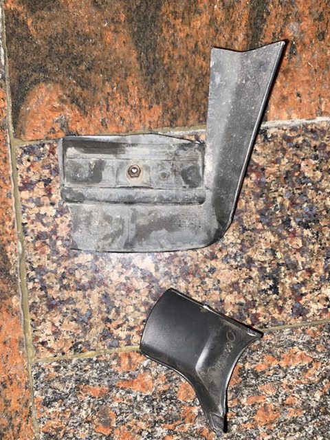 另外倒車時還噴了一些塑膠殼出來,不過我左看右看實在看不出這到底是哪個部位的零件? 這是其中兩塊比較大的碎片,有人知道這是哪個部位的殘骸嗎?