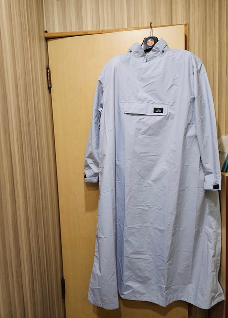 這張可能第一眼會看不懂,就是我蹲馬步從上往下拍,必須說下擺寬度真的超夠;創世雨衣