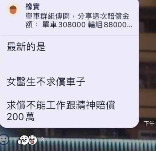 dog22: 200萬真的不算多,被撞到的是醫生 180.217.235.33 03/23 18:47