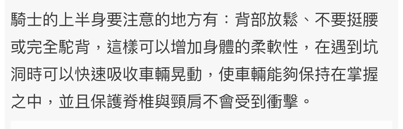 另外我猜原PO騎乘姿勢應該跟我一樣是坐得直挺挺的那種人 這種姿勢是標準騎乘姿勢