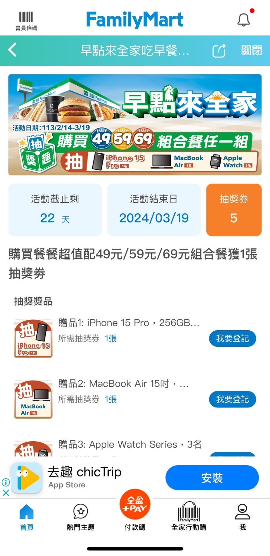 最近因為看到全家早餐組合有抽mac apple watch活動