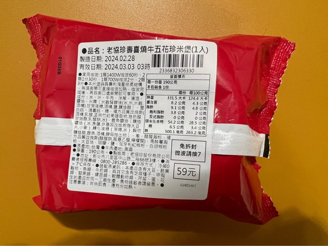 【商品名稱/價格】:老協珍壽喜燒牛五花珍米堡/59元
