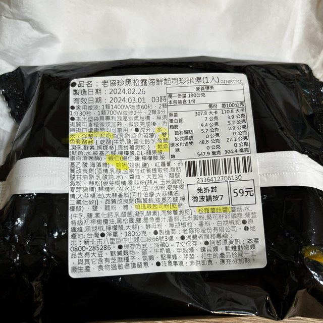 【商品名稱/價格】:老協珍黑松露海鮮起司珍米堡/ i珍食38元(原價59元)