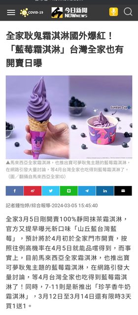 推 Spencer22: 紫色的冰淇淋終於不是芋頭口味了,藍莓的也是新鮮少見 03/06 19:16