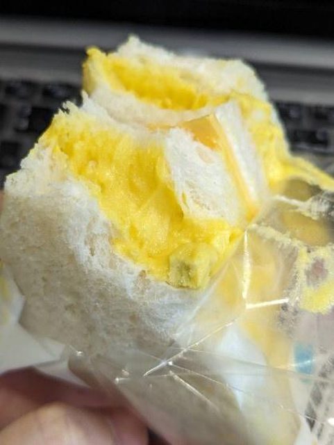 蛋沙拉份量蠻多的,打開的時候內餡還爆出來沾到手