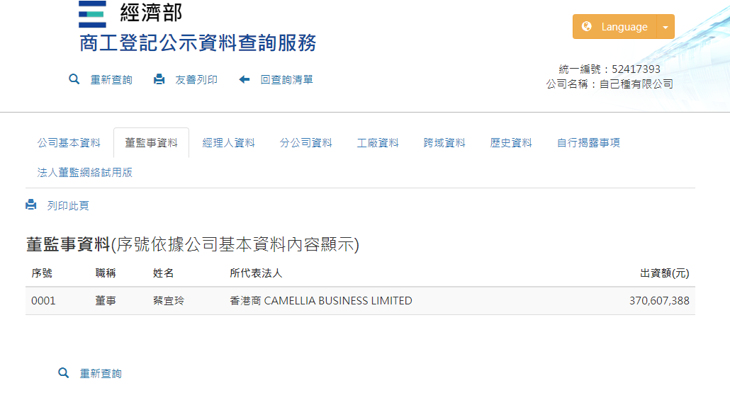 → a1412762347: 自己種有限公司董事蔡宜玲香港商 CAMELLIA BUSINESS 03/12 14:53