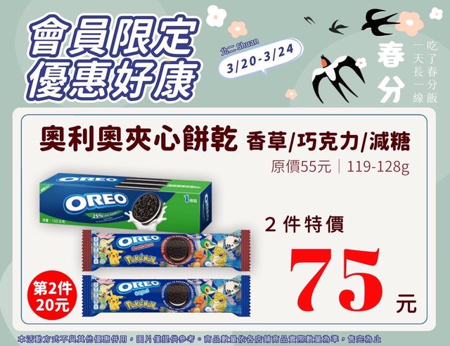 → bailan: oreo這價錢不行,49漲價55就算了,以前買一送一都變成第 03/16 14:23