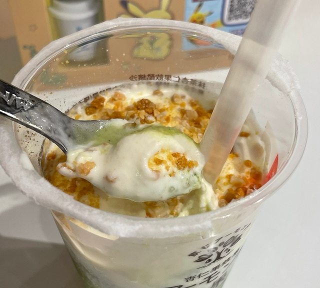 還可以喝到些許杏仁顆粒、菠蘿碎片跟巧克力脆片