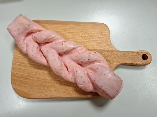 而這次萊爾富推出了草莓口味的版本 從一般巧克力變成了草莓巧克力淋醬