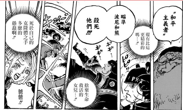 和平主義者聽到波尼的話,反而攻擊海軍了,因為貝卡帕庫將波尼設為比五老星還高的和