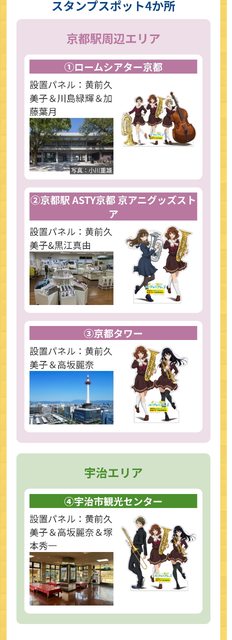 立牌位在在rohm音樂廳、京阿尼商店、京都塔