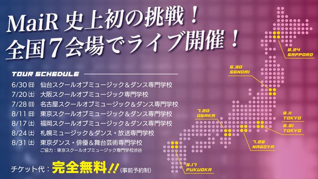 JVC主流出道的Vtuber歌手 MaiR 要在日本國內演唱全國巡迴 總共有7場