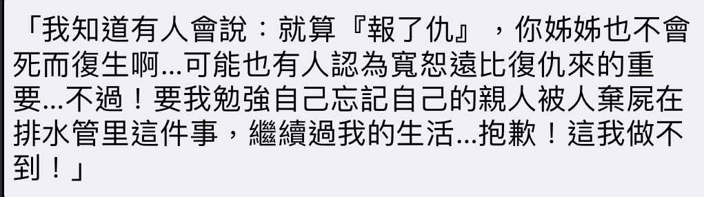 sunwit: 殺惡人的話.復仇至少可以減少未來的受害者 03/24 18:21