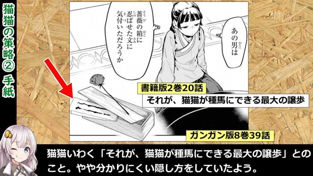在原作中有特別提到,貓貓會到綠青館的時候特別把一個木盒拿回宮中。