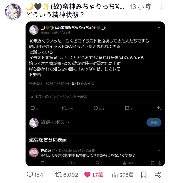 推 chinnez: 不是啊 ,ai能學會畫風把圖畫得好看是一回事 ,可是某國 03/25 14:00
