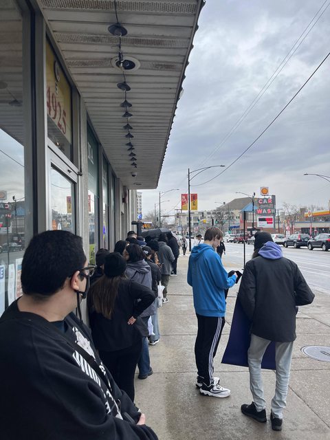隊伍從會場開始,一路排到了五個街區外,花了我八分鐘才走到末端。