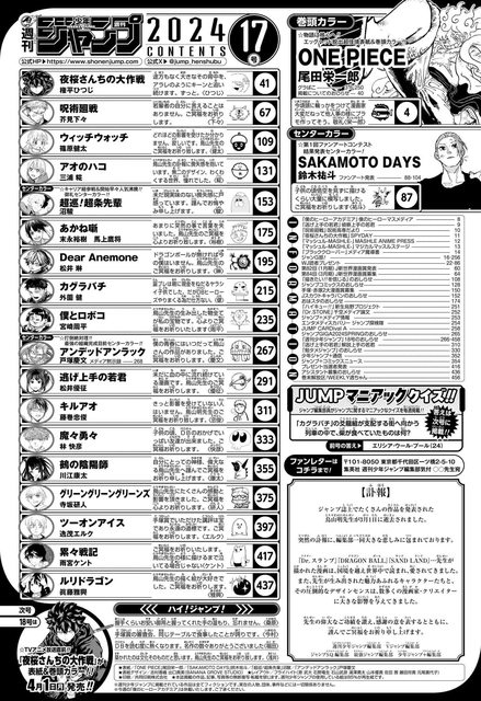 標題Re: [情報] 週刊少年JUMP 2024年17號順位 鳥山明追悼