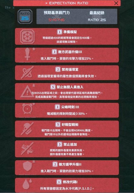 解說:敵方攻擊力增強看起來很可怕,其實只要+hp跟+防禦選少一點,甚至不選擇,能快