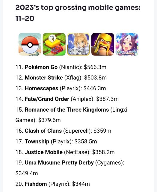 其實也不用看日本營收,你看2023全球的手遊營收前十名