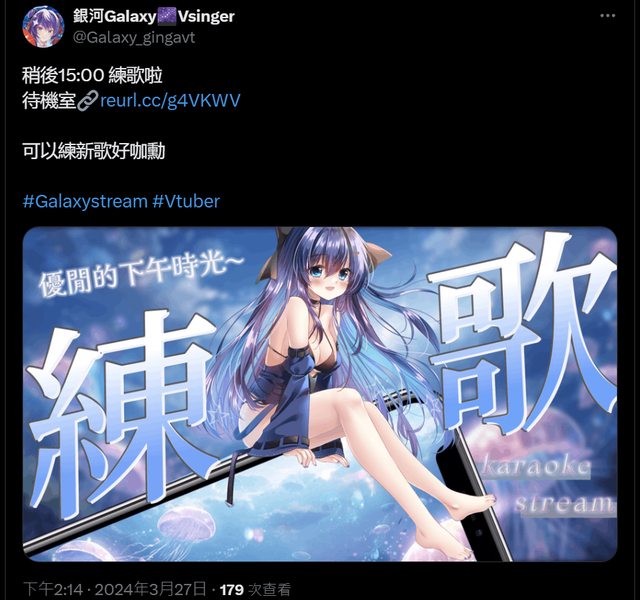 想聽銀河練歌,或是想知道銀河要練哪些歌的人可以進待機室囉
