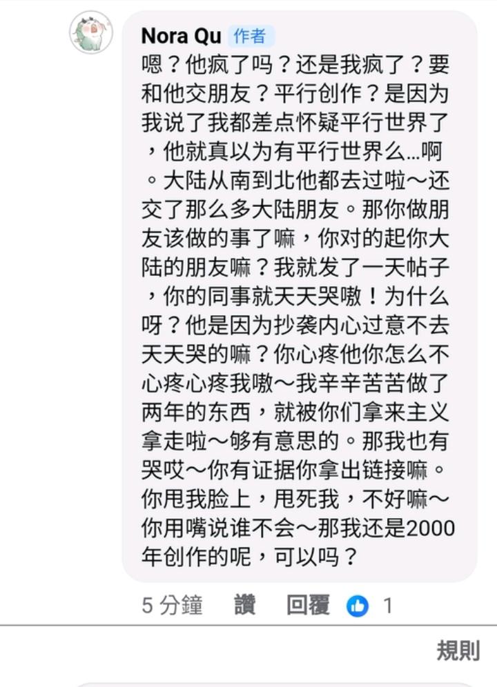 → mapulcatt: 一個被抄襲 還被誣賴抄襲的創作者 說出來的話居然是 05/16 03:12
