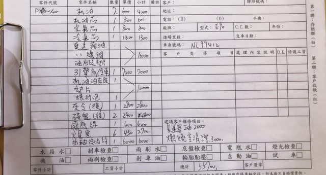 先放上一牽回來就整理的工單以及車照