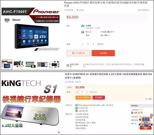 有加裝:倒車顯影、衛星導航、行車紀錄器、藍芽影音播放器