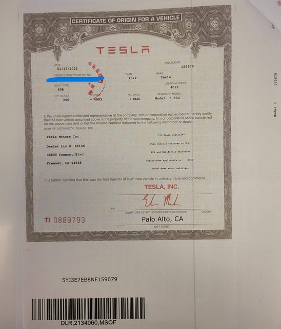 車輛品牌/產地/出廠年月:Tesla / USA / 2022.1