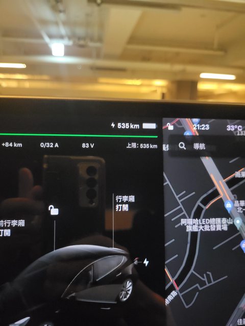 100%電量:535公里(如附圖)