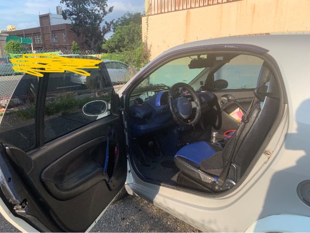 車外殼無破損但有一些A到的痕跡,內裝狀況普通,藍色內門板塑膠內裝被前車主