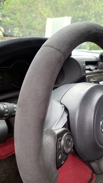 白色紅內裝自排,全車原廠沒下賽道,原廠五年保固中。方向盤在牛將軍重包alcantara
