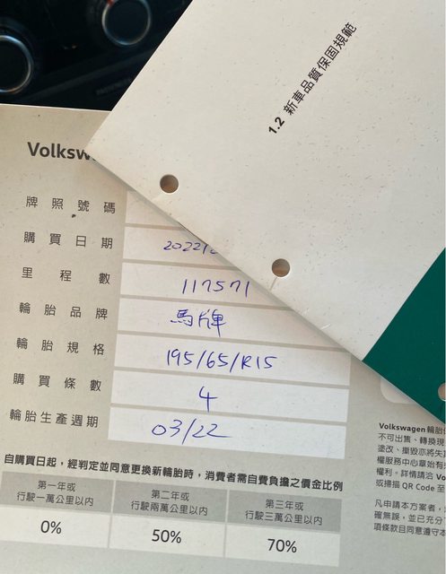(6). 四條胎馬牌CC6在里程117000 (2022/08) 更換,胎紋還很深