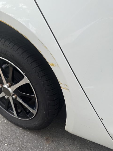 9.剛拿到駕照時,有於台中老虎城地下室擦到一次後輪拱…還好只有留下黃黃的痕跡(如圖)