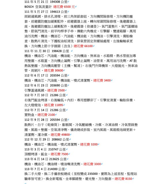 家中老車準備售出,近兩年花了很多心力跟金錢整理,總共花費近20萬,詳細內容可以參