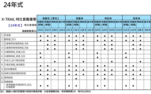 : 車款型式:2024 X-TRAIL 領航版(124.9萬特仕版套餐) 舒適版