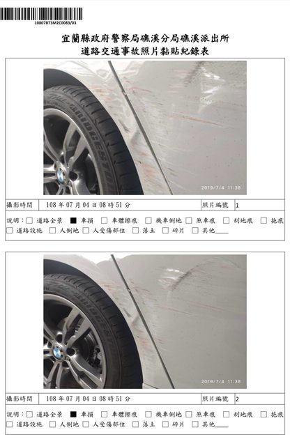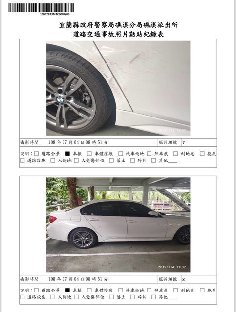 原鈑件,以下提供當時擦撞照片供參考(8/5向警察機關調閱所得)