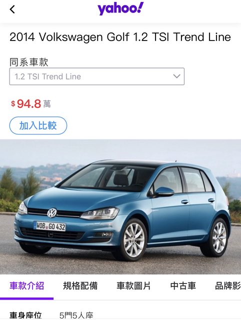 此為2014年Golf車的網址,94.8萬這款,裡面有很詳盡的配備介紹。