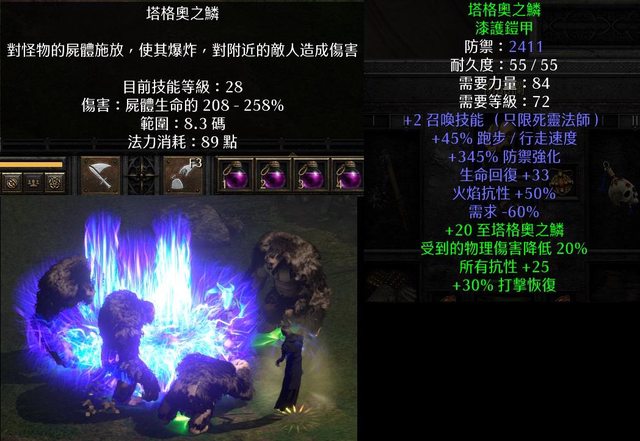塔格奧狀態下的屍爆術,傷害會隨著技能等級提升,