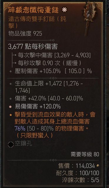 : 物 品:太古易傷雙手鎚