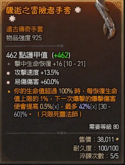 標題[競標] D4 S4 太古攻速易傷手套