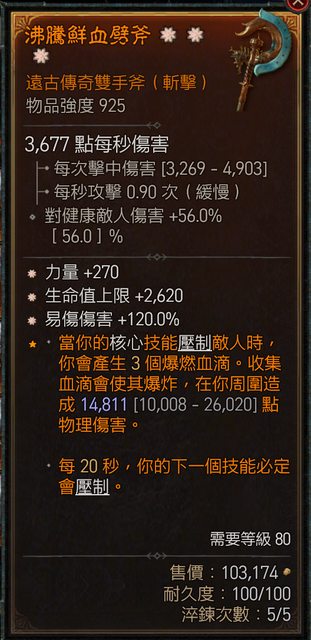 標題[競標] D4 S4 3太古雙手斧-力量/生命/易傷