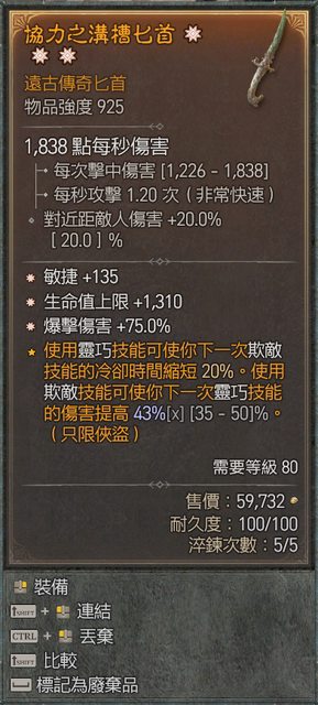 三太古匕首 敏捷、生命上限、爆傷