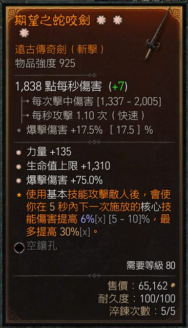 標題[競標] D4 S4 3太古單手劍-力量/生命/爆傷