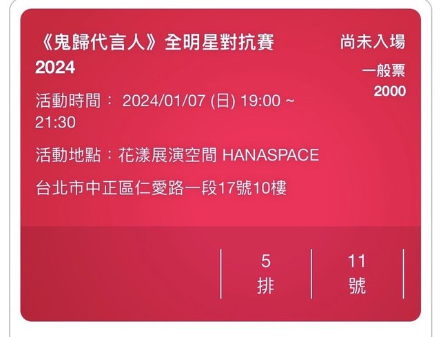 標題 [急售] 1/7(日) 《鬼歸代言人》全明星對抗賽20