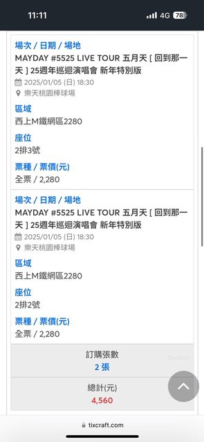 標題[換票] 五月天 01/05 2280換 12/31 2280